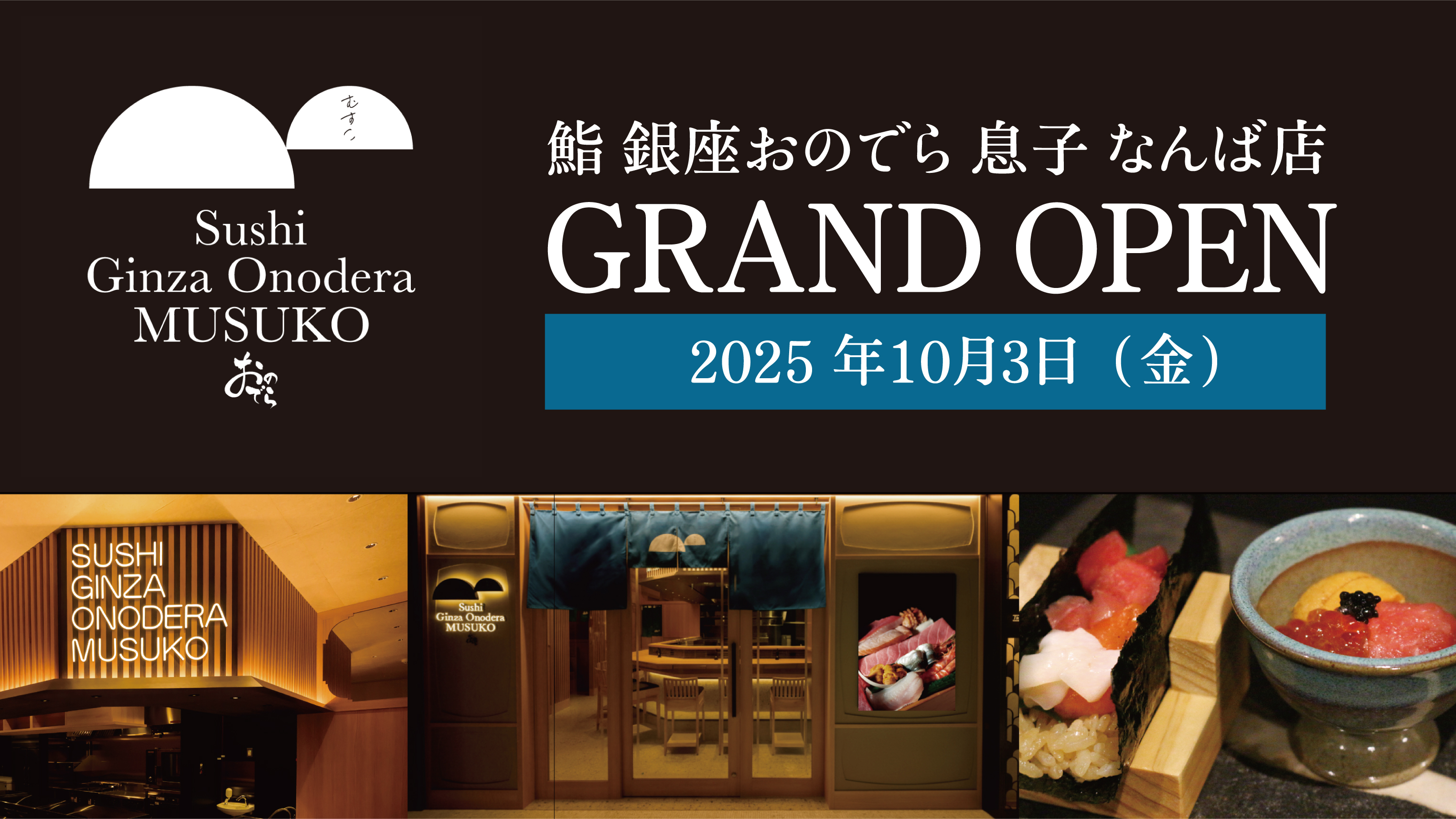 【「鮨 銀座おのでら」のカウンター鮨入門店が、大阪・なんばに誕生!】「鮨 銀座おのでら 息子 なんば店」 10月3日(金)グランドオープン決定!