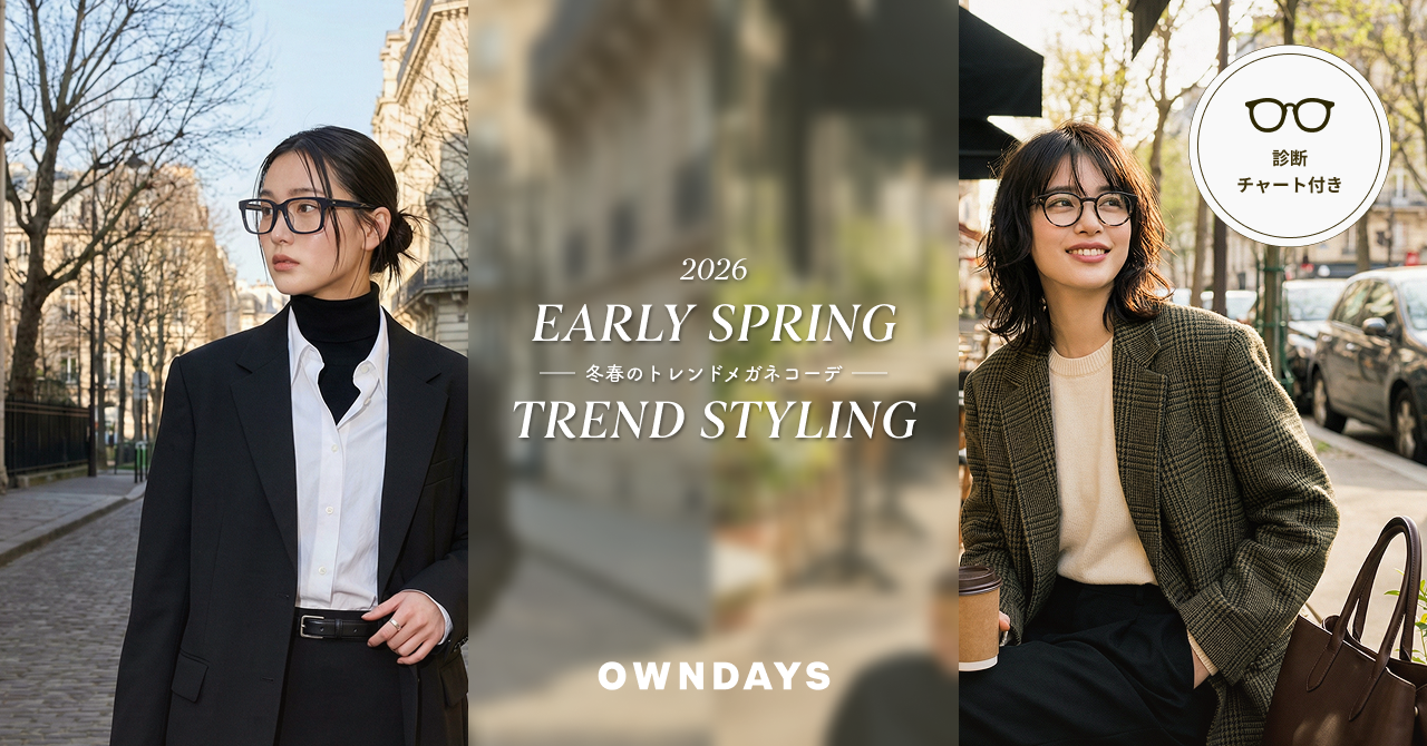【OWNDAYS|オンデーズ】「リラックス・テーラリング」で魅せる、2026年冬春の最旬アイウェア。OWNDAYSが提案する、タイプ別診断で出会う「洗練メガネ」コーデ3選