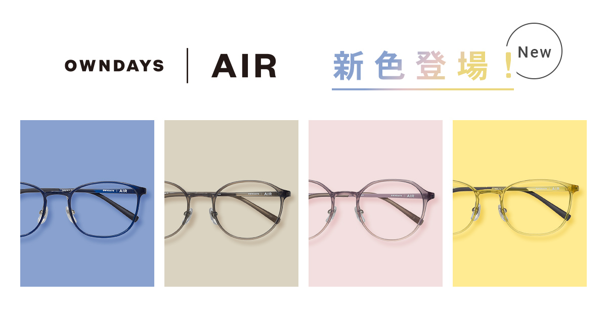 【OWNDAYS|オンデーズ】30秒に1本売れている「OWNDAYS | AIR」、TOP3フレームに旬カラーが仲間入り!ピンクグレージュなどのくすみカラーやスーツ映えのネイビー・ブラウンササが登場