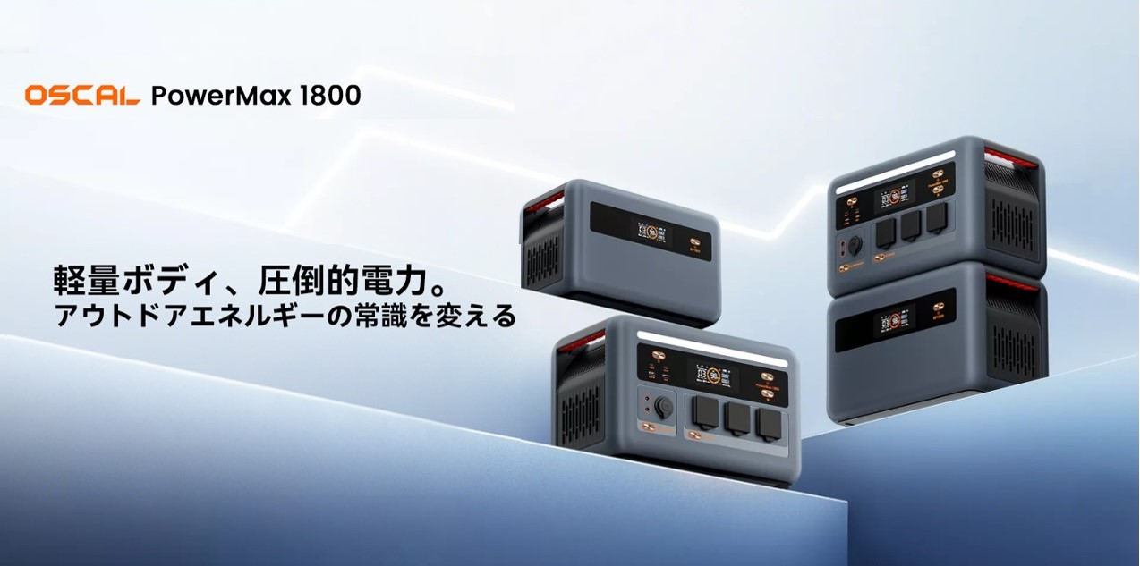 アウトドアで自由に電力を!大容量&軽量ポータブル電源「Oscal PowerMax 1800」新登場