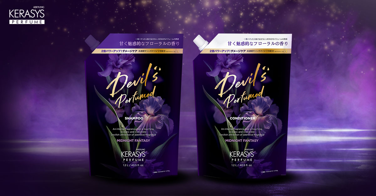 ドン・キホーテ限定!韓国エギョン社のヘアケアブランド「KERASYS」人気No.1の香り【デビルズ パフューム ミッドナイトファンタジー】が、大容量1.2L詰め替えで新登場!