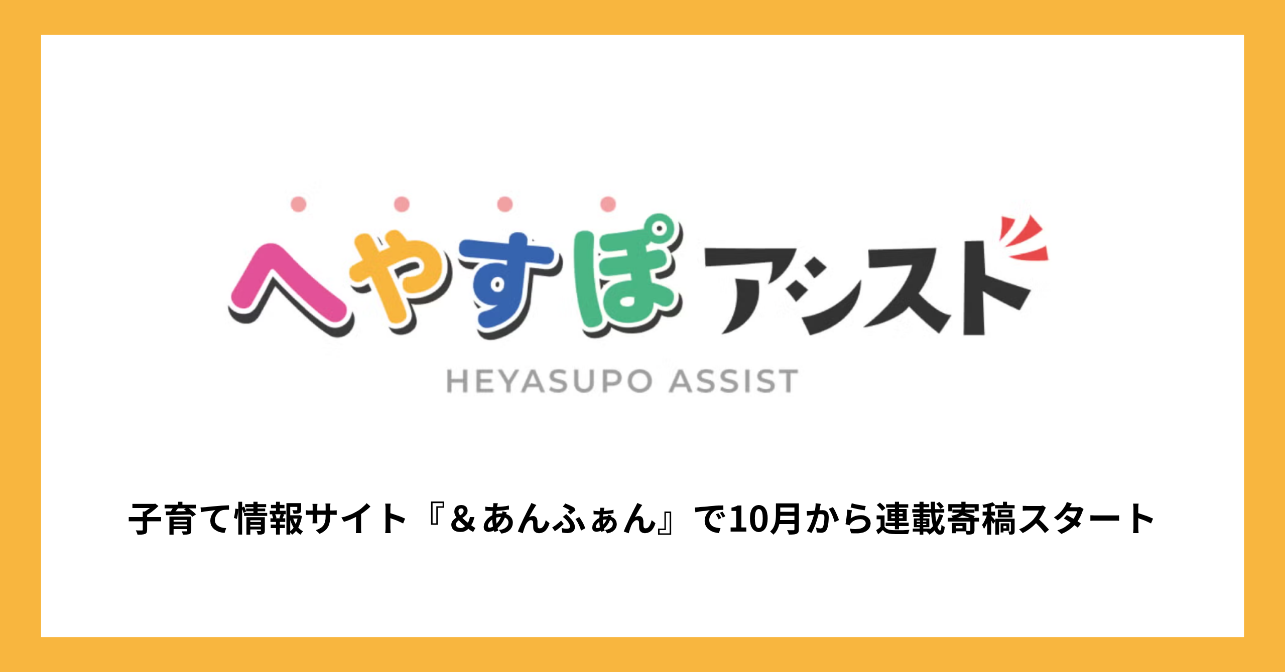 運動×テクノロジーで子どもの発達支援を行う「へやすぽアシスト」、 子育て情報サイト『&あんふぁん』で10月より寄稿開始
