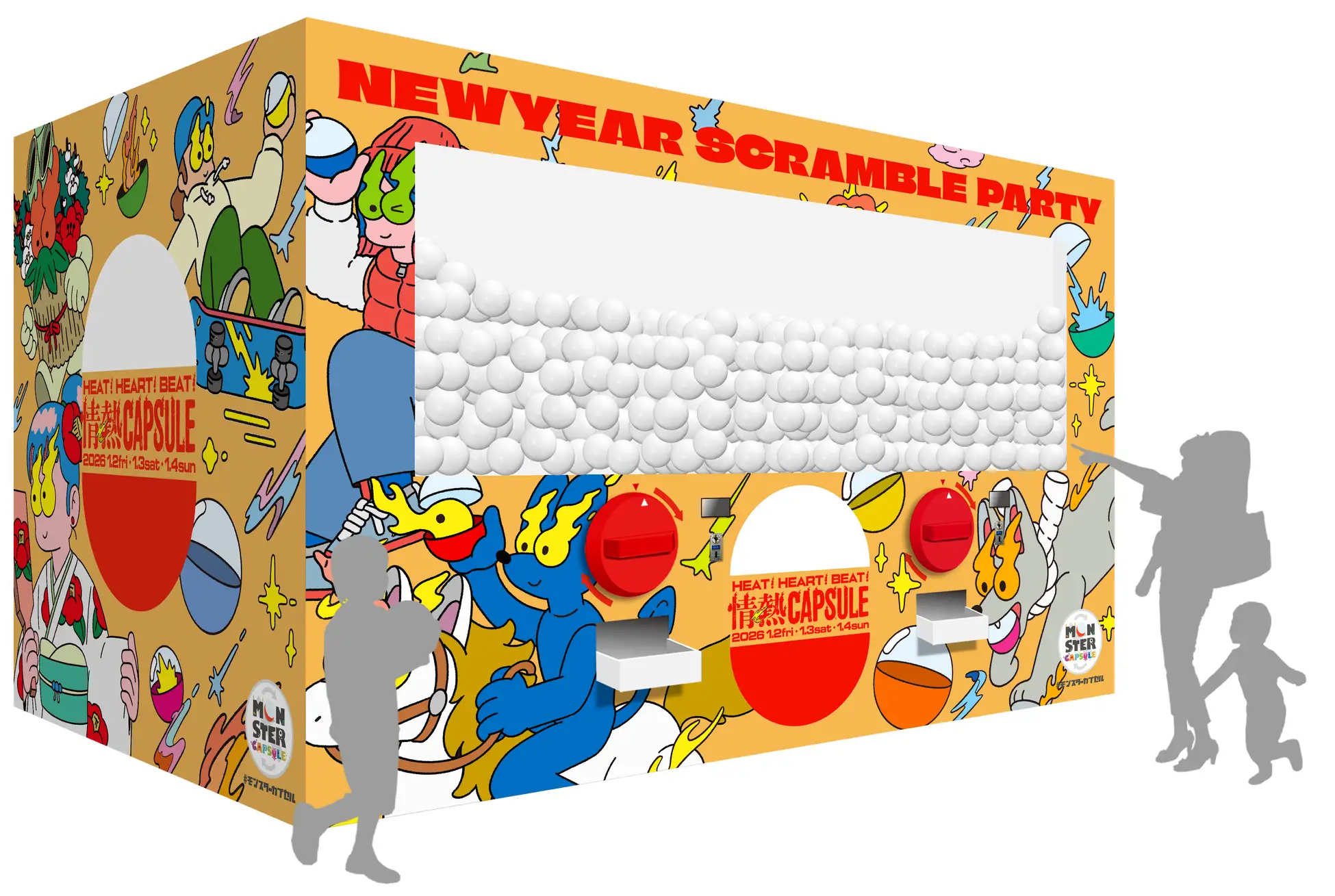 高さ3.0m横幅4.5mの巨大ガチャ「モンスターカプセル」が渋谷スクランブルスクエア「NEW YEAR SCRAMBLE PARTY 2026」に登場!