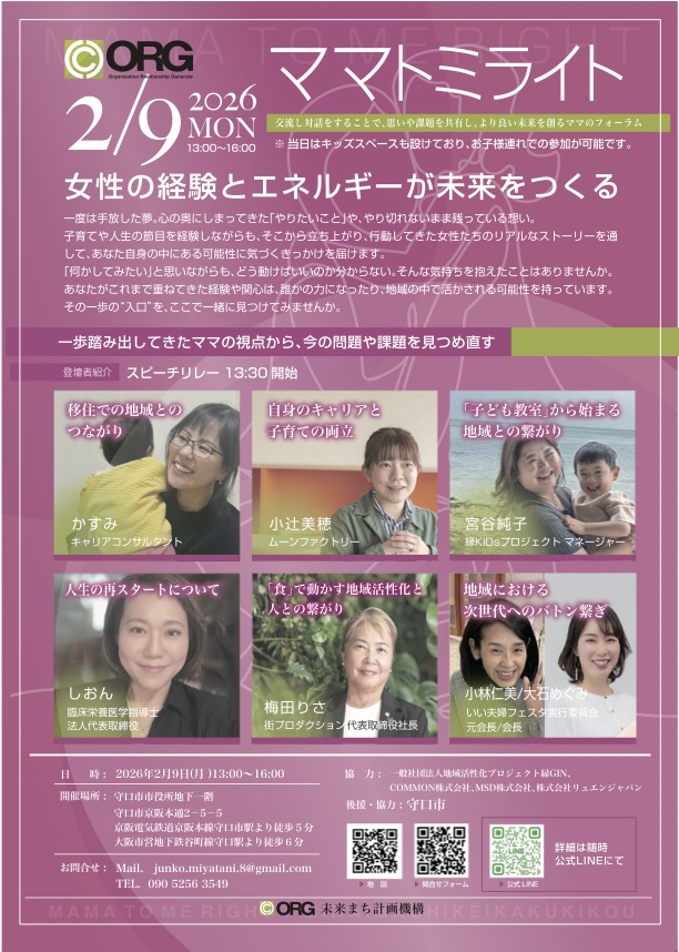 【参加者募集・協賛企業募集】行政・ママ・企業が集う対話型フォーラム「ママトミライト」2026年2月9日(月)大阪府守口市で開催