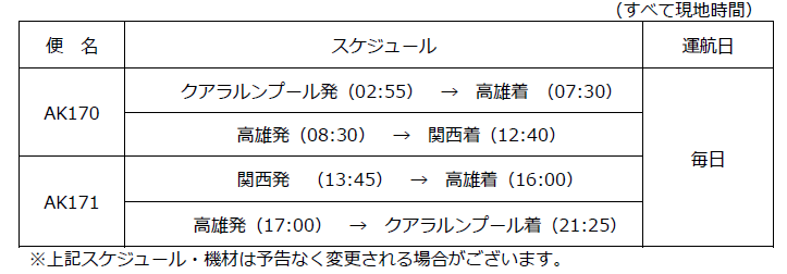 関西国際空港 エアアジア・マレーシア 関西=高雄=クアラルンプール線を新規就航!