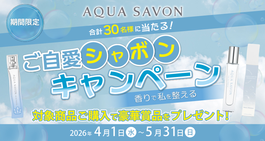 アクア シャボンを買って当たる!購入者対象「ご自愛シャボンキャンペーン」開始。人気の体験ギフトやスピーカーなどの賞品を合計30名様にプレゼント!