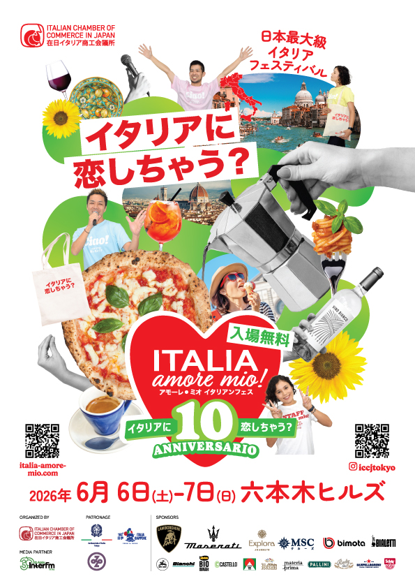 在日イタリア商工会議所主催「Italia, amore mio!(イタリア, アモーレ ミオ)2026」開催決定!2026年6月6日(土)7日(日)六本木ヒルズ