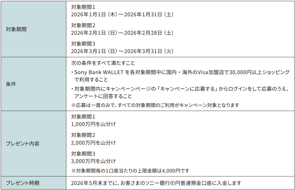 「Sony Bank WALLET 10周年記念キャンペーン」実施のお知らせ総額6,000万円山分け!&抽選で10万円プレゼント