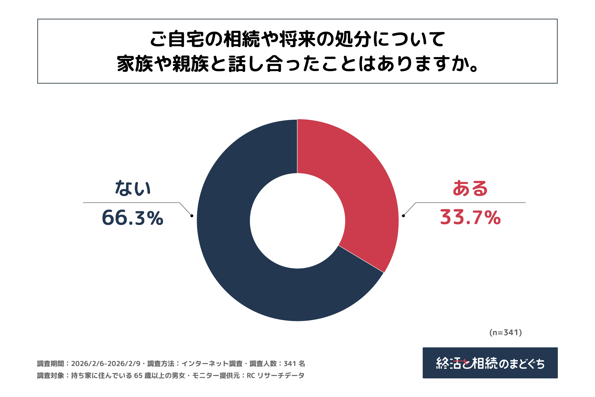 持ち家に住んでいる65歳以上の男女の約3人に2人が、自宅の相続や将来の処分について家族や親族と話し合ったことがないと回答!株式会社終活のまどぐちが「高齢者の持ち家の将来に関する調査」を実施!