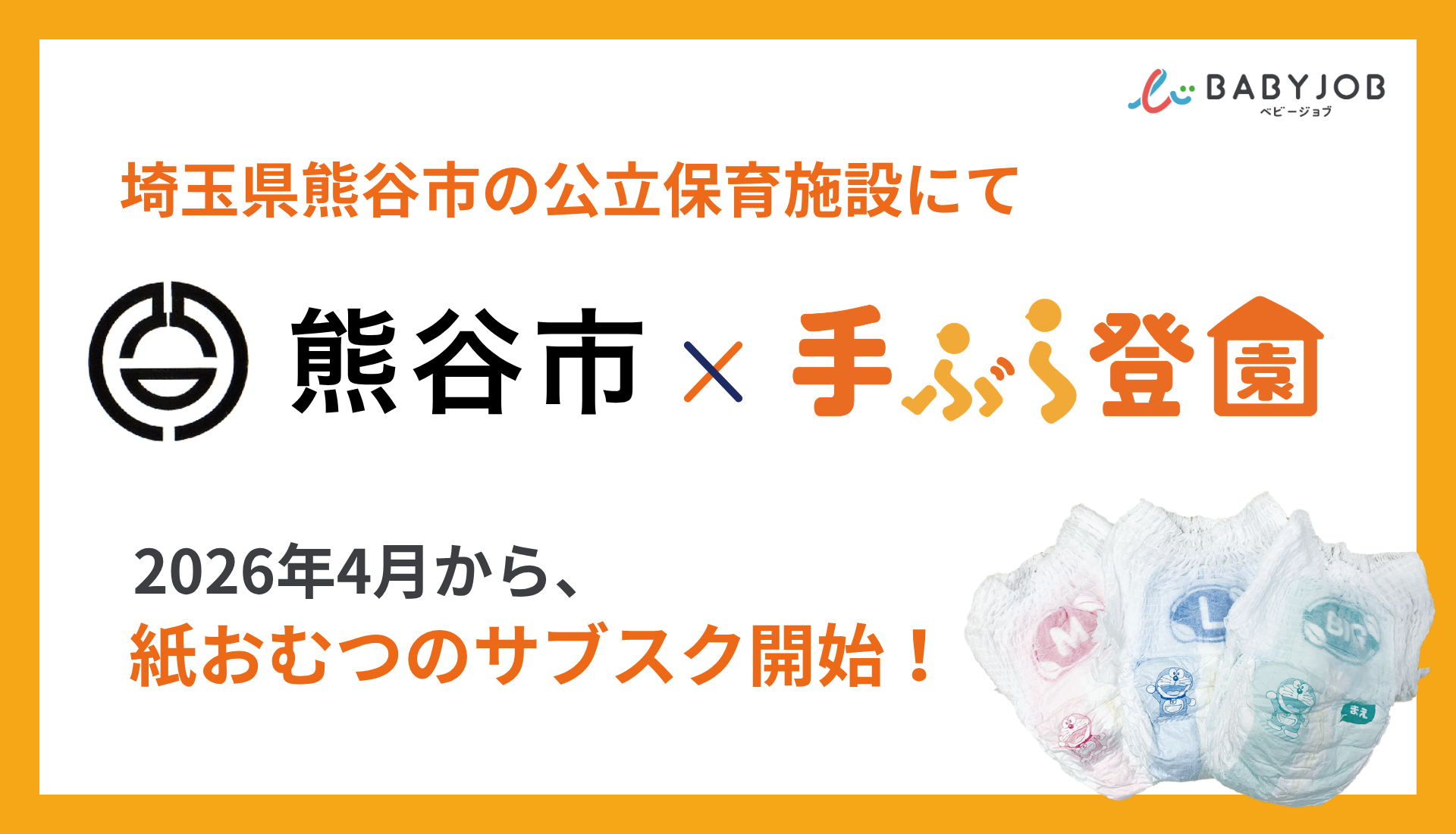保育士が使いやすい専用おむつを採用したサブスク「手ぶら登園(R)」、埼玉県熊谷市で2026年4月からスタート