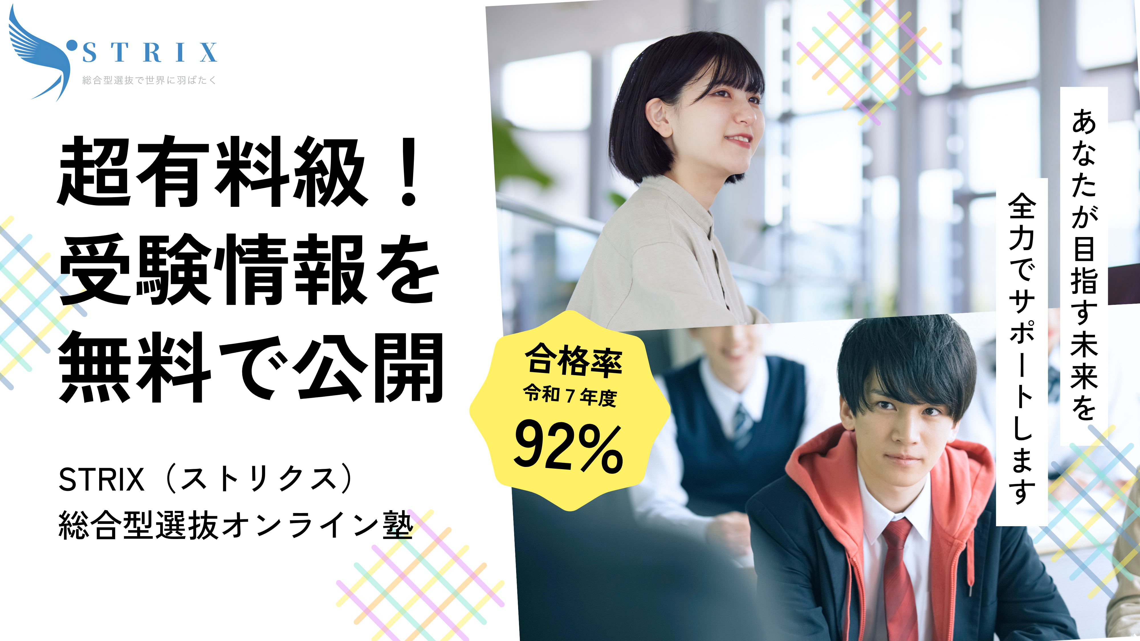 「今からでも間に合うのか?」新高3生・保護者のための総合型選抜戦略セミナー|STRIXオンラインセミナー無料開催