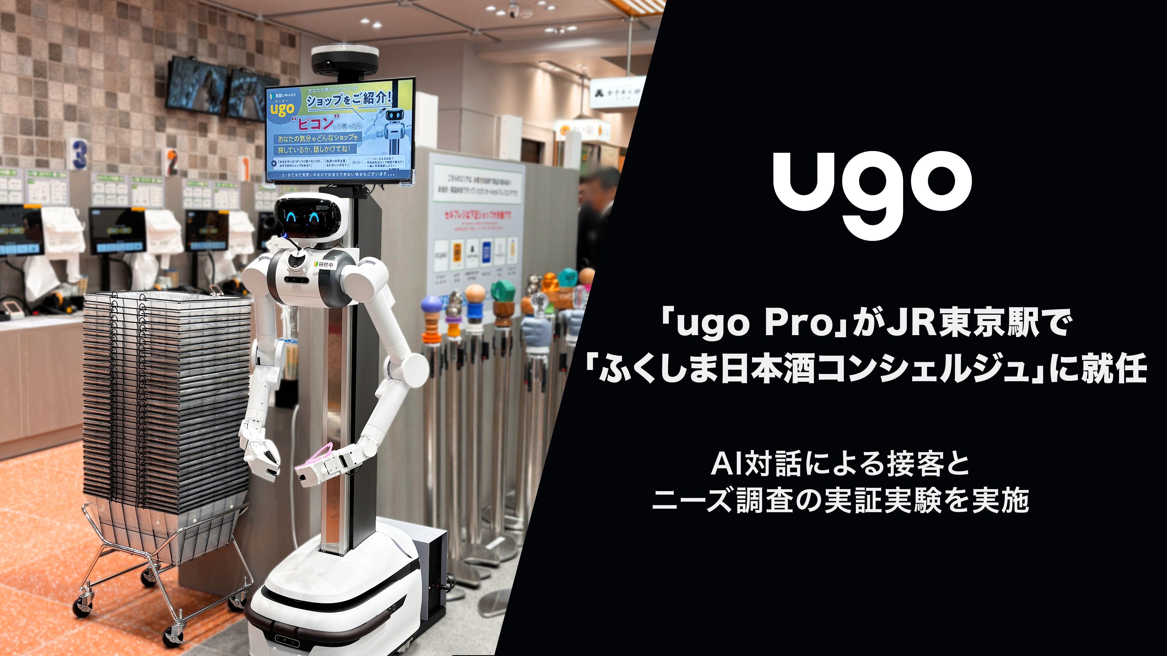 「ugo Pro」がJR東京駅で「ふくしま日本酒コンシェルジュ」に就任!AI対話による接客とニーズ調査の実証実験を実施