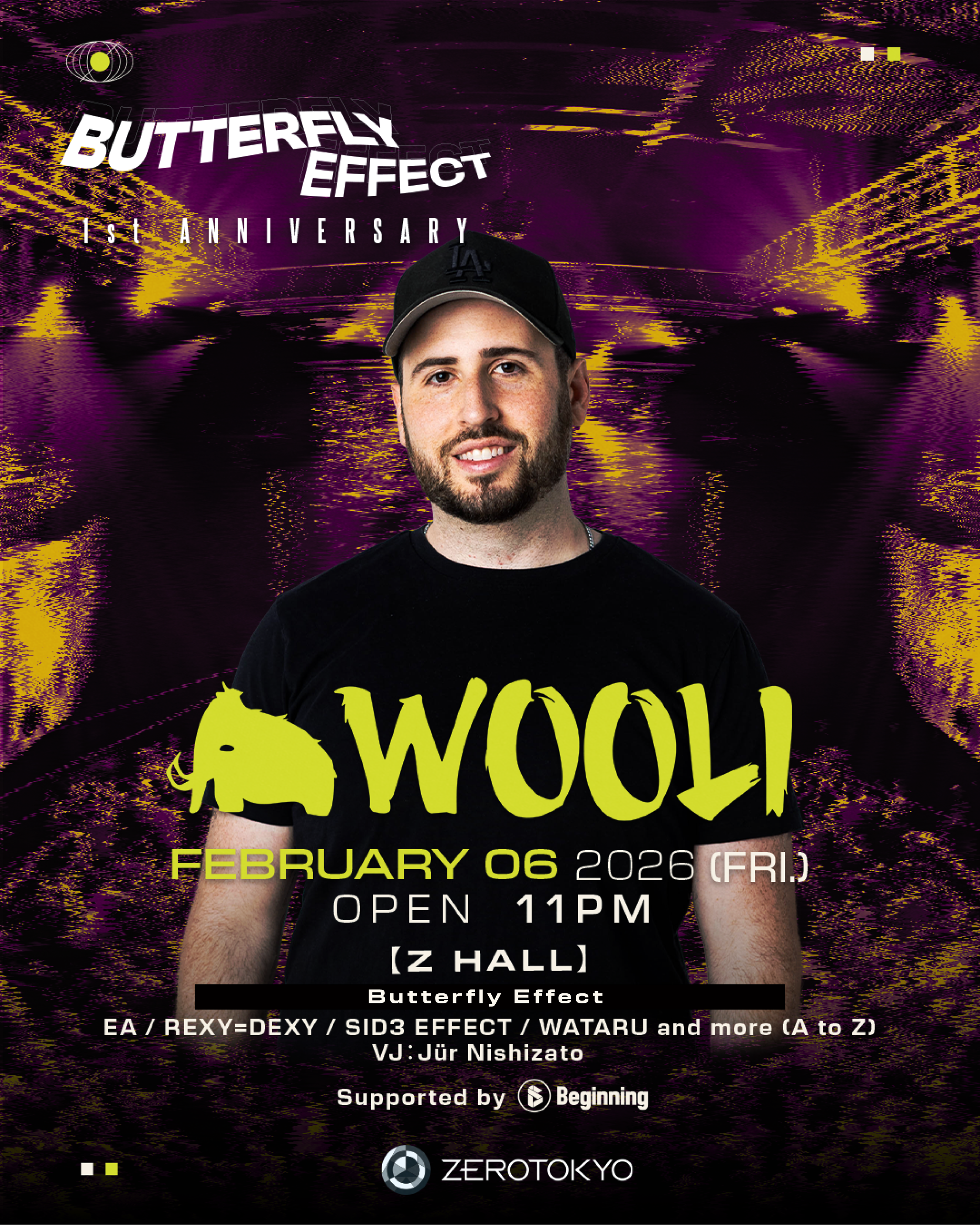 ベースミュージックパーティー『Butterfly Effect』がスタートから1年の記念パーティーを開催!新たなキングと目されるWOOLIの初来日が決定!!