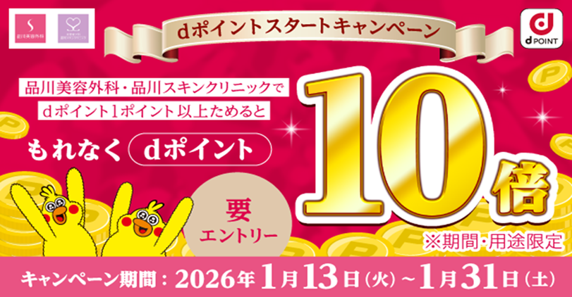 品川美容外科・品川スキンクリニックでdポイントがご利用可能になることを記念し、「品川美容外科・品川スキンクリニック dポイント10倍進呈キャンペーン 」を開催!