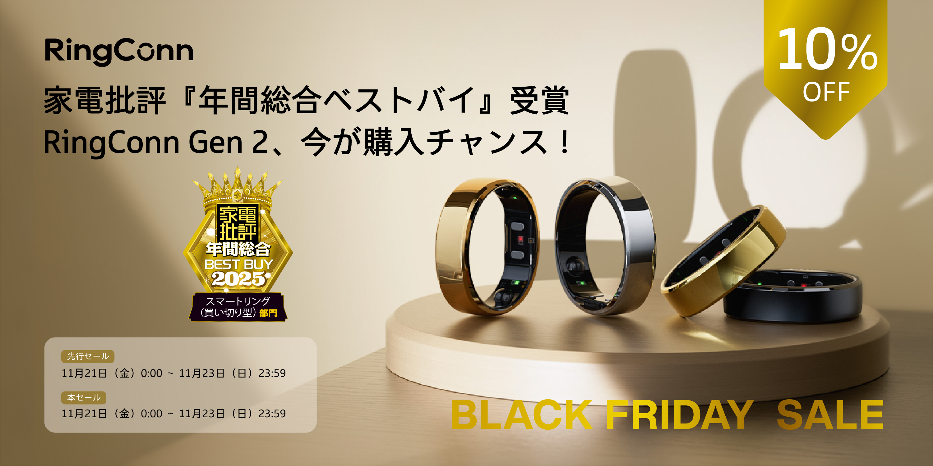 家電批評「年間総合ベストバイ2025」受賞のスマートリング「RingConn Gen 2」がAmazonブラックフライデーに登場