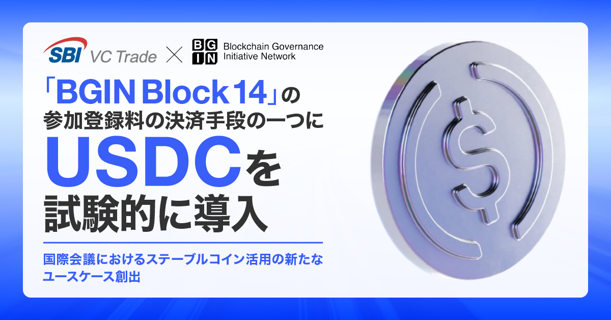 【SBI VCトレード × ビーエヌ】「BGIN Block 14」の参加登録料の決済手段の一つにUSDCを試験的に導入(PR TIMES トレンド)