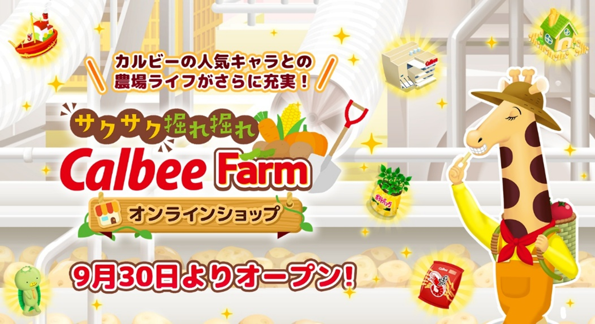 カルビーの人気キャラとの農場ライフがさらに充実!ゲーム内アイテムが買える『サクサク 掘れ掘れ CalbeeFarm』公式オンラインショップが9月30日よりオープン