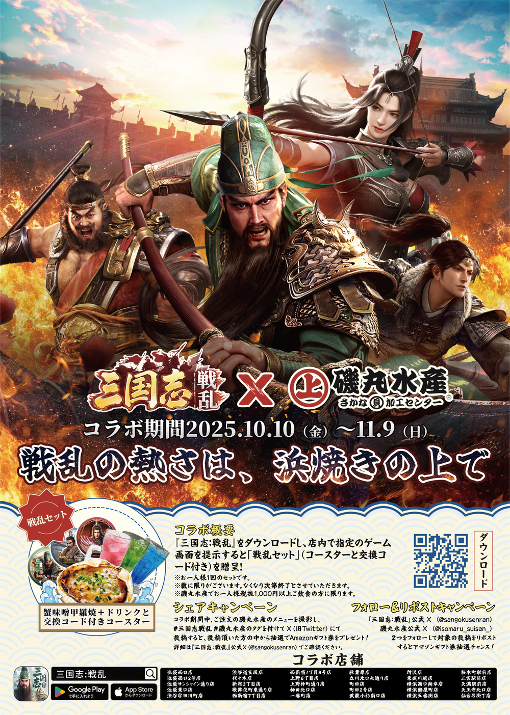 戦乱の熱さは、浜焼きの上で!「磯丸水産」x『三国志:戦乱』 コラボキャンペーン開催