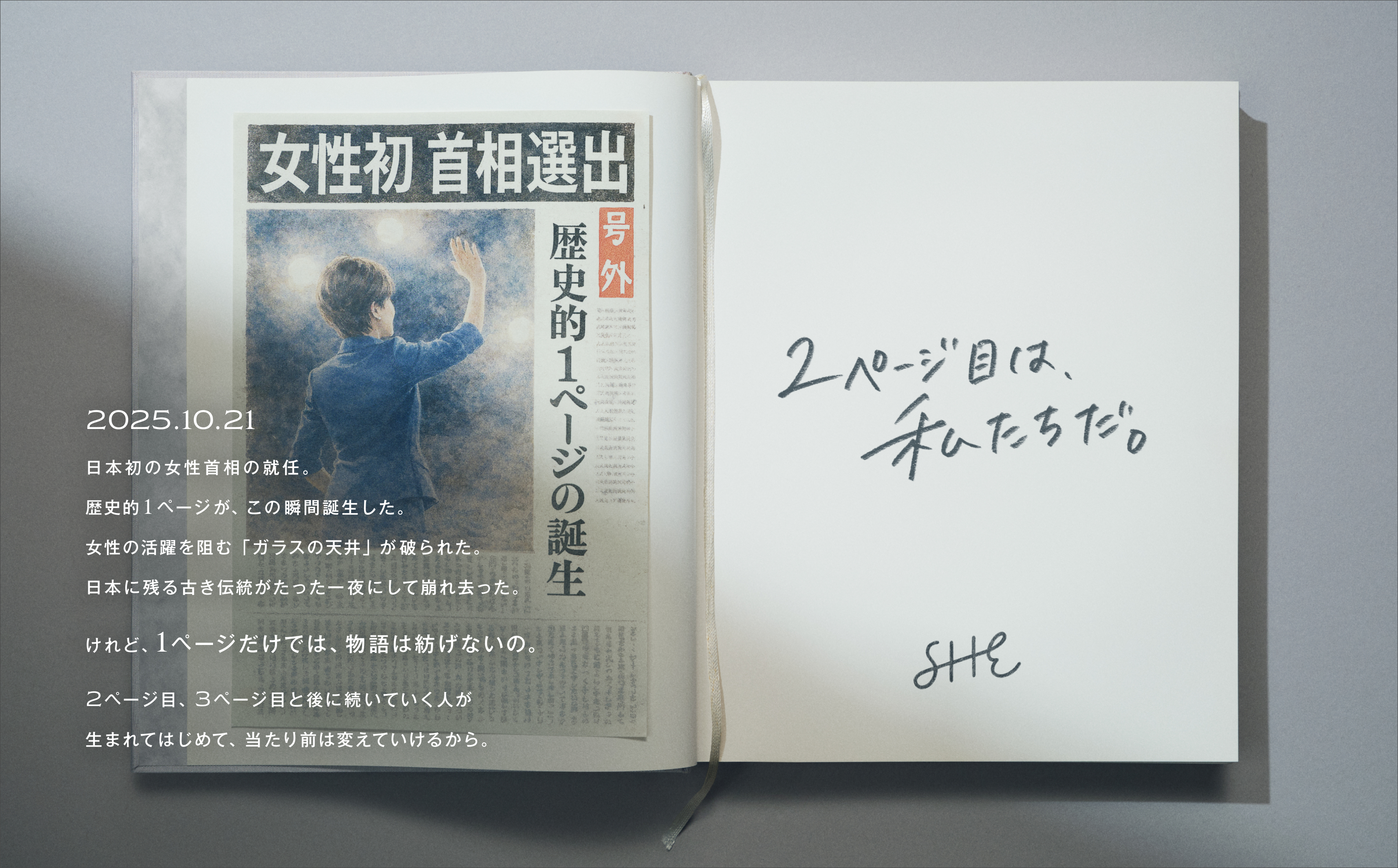 SHE、「2ページ目は、私たちだ。」日本初の女性首相誕生を受け、『国際女性デーをなくすための問題集』を公開