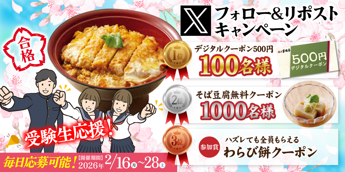 【家族亭】その場で当たる!「受験生応援Xフォロー&リポストキャンペーン」を2月16日(月)午後8時より開催