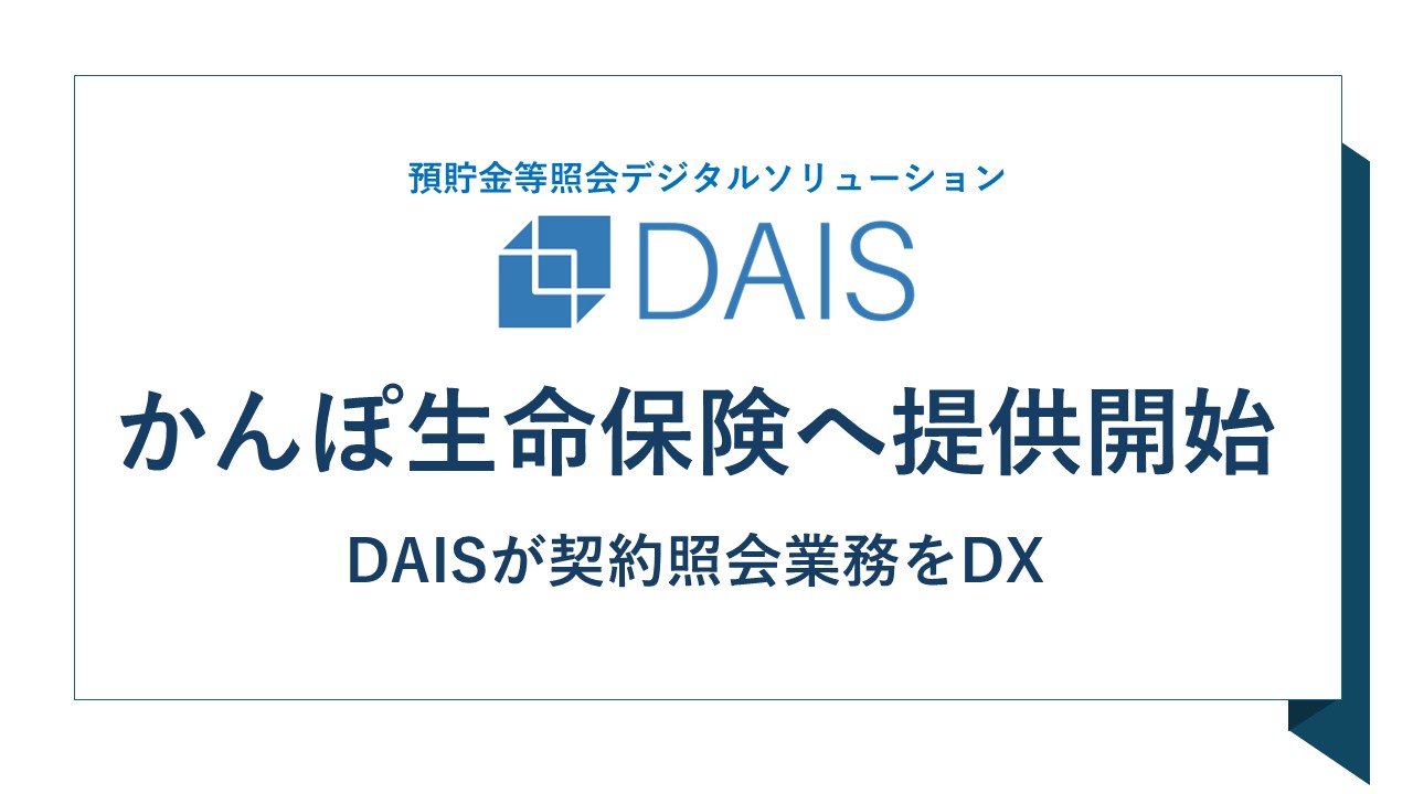 預貯金等照会デジタルソリューション「DAIS(ダイス)」かんぽ生命保険へ提供開始