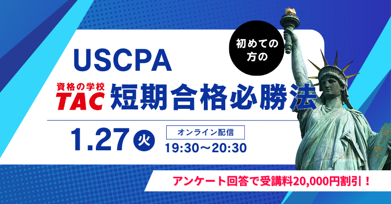 【資格の学校TAC】USCPA講座 オンラインセミナー「初めての方の『TAC短期合格必勝法』」2026年1月27日(火)19:30開催!