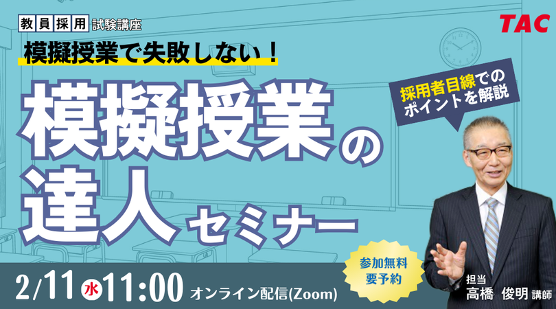 【TAC教員採用試験】オンラインセミナー「模擬授業の達人セミナー」を2/11(水)に開催