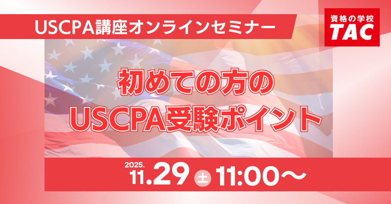 【資格の学校TAC】オンラインセミナー"初めての方のUSCPA受験ポイント!” 11/29(土)11:00開催!