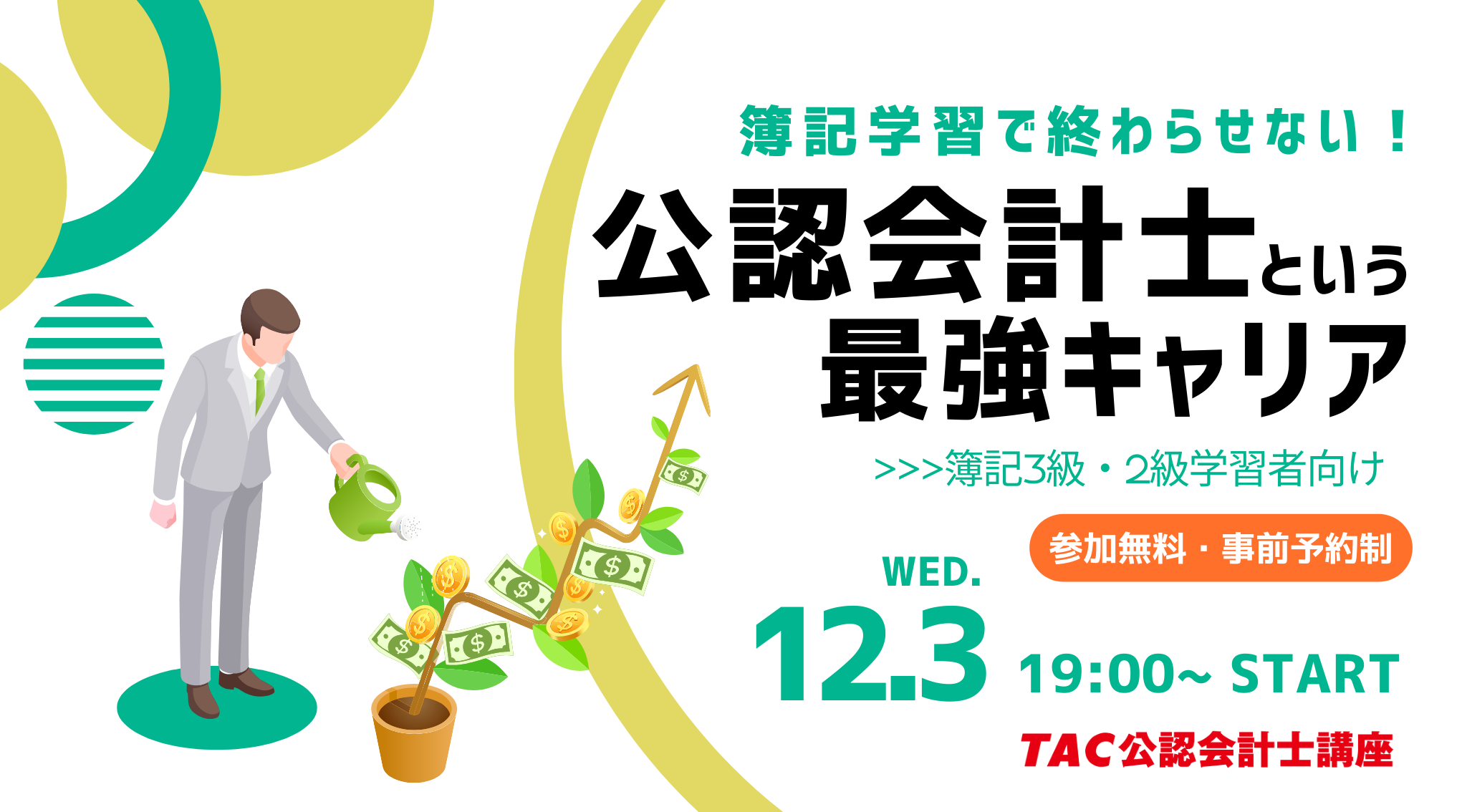 【資格の学校TAC】12/3(水)19:00~「簿記学習で終わらせない!公認会計士という最強キャリア」《無料オンラインセミナー》