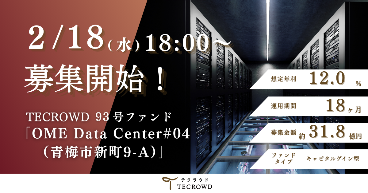 【想定年利12.0%】国内キャピタルゲイン型ファンド「OME Data Center #04(青梅市新町9-A)」に投資するTECROWD93号ファンドの募集開始