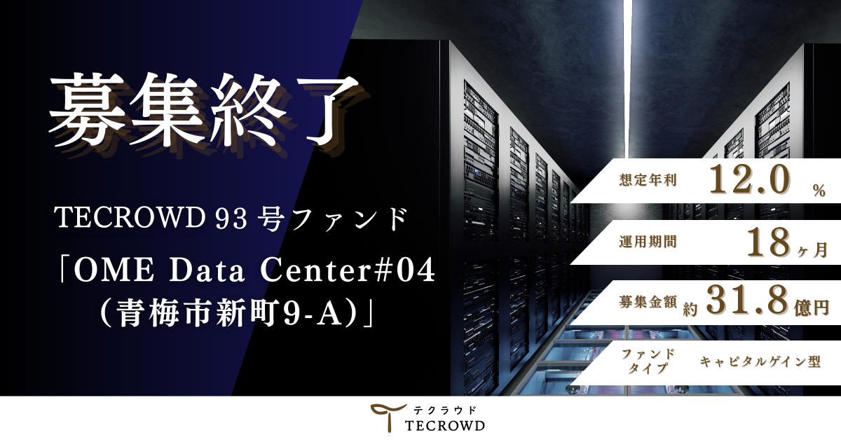 【想定年利12.0%】国内キャピタルゲイン型ファンド「OME Data Center #04(青梅市新町9-A)」に投資するTECROWD93号ファンドの募集終了