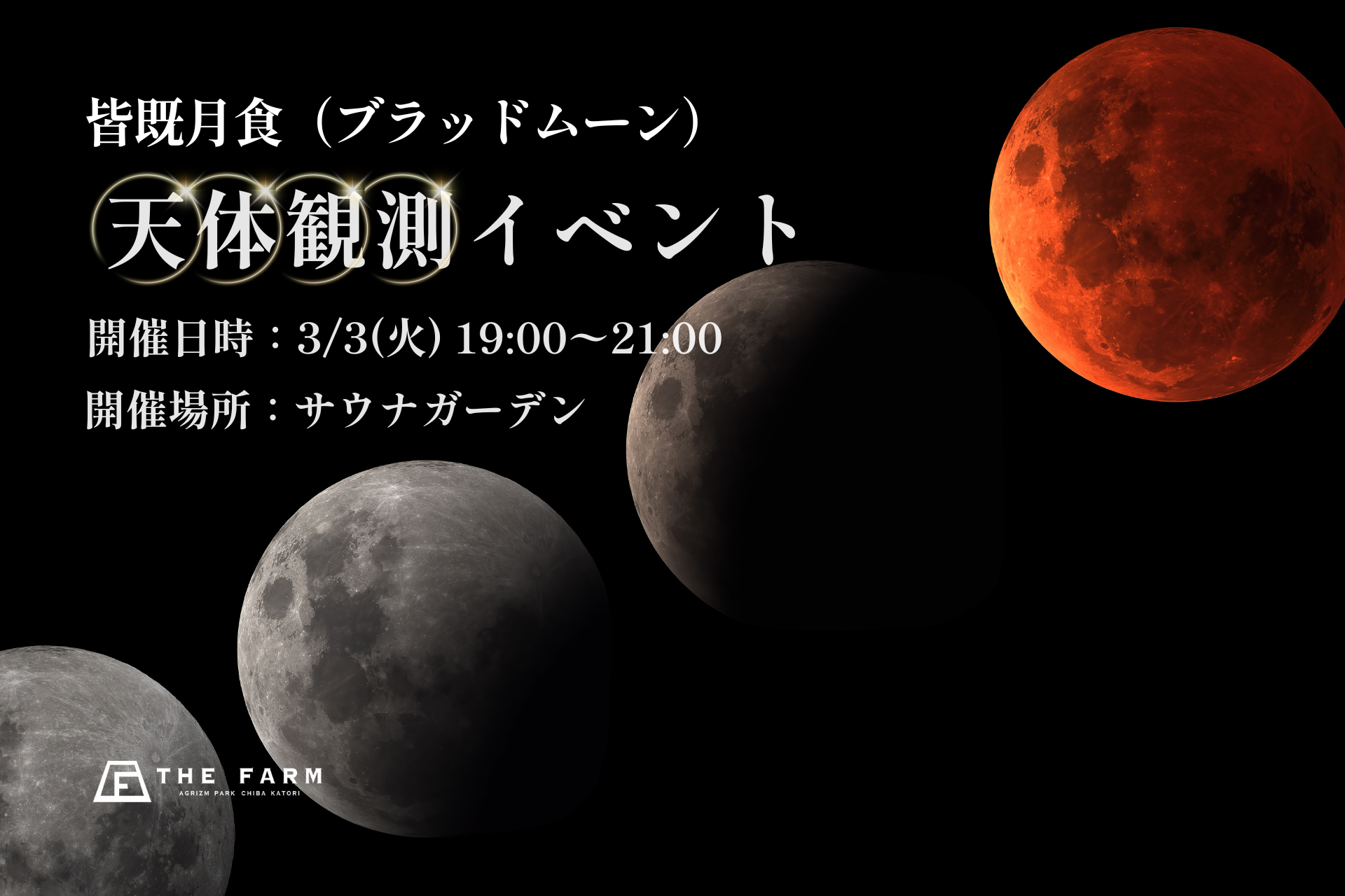 【皆既月食(ブラッドムーン)×冬のサウナ】3/3(火)の夜、サウナガーデンで天体観測イベントを開催|おふろcafeかりんの湯【千葉県】