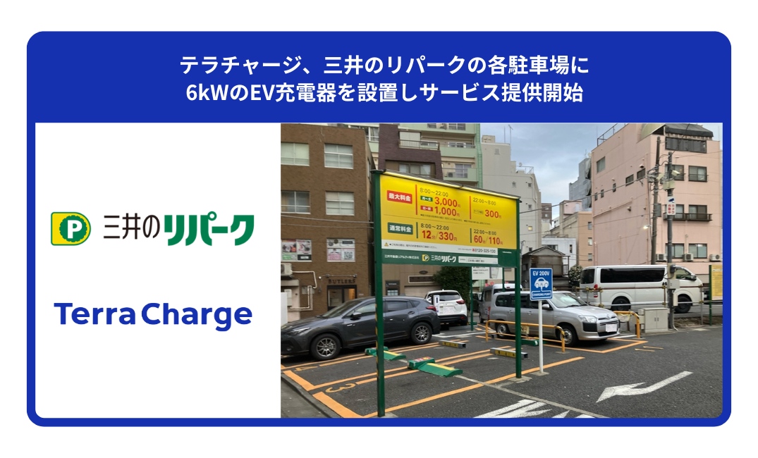 テラチャージ、三井のリパークの各駐車場に6kWのEV充電器を設置しサービス提供開始