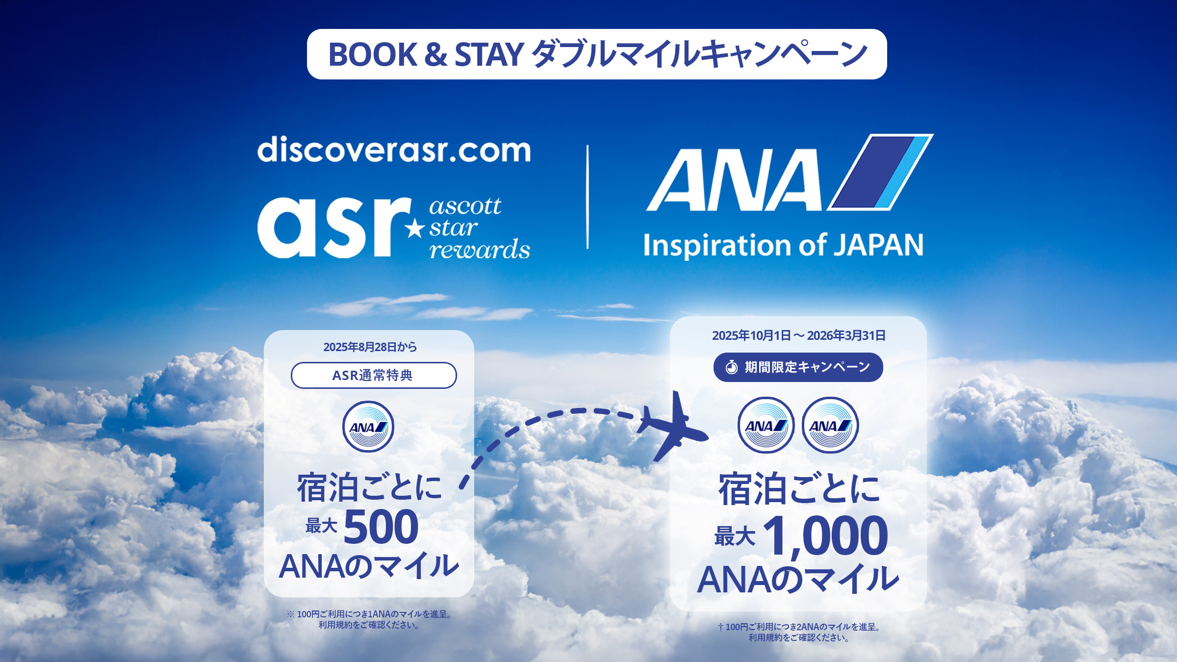 アスコットスターリワーズ(ASR)、ANA提携記念キャンペーン開始、長期滞在施設も新たにASRポイント対象に