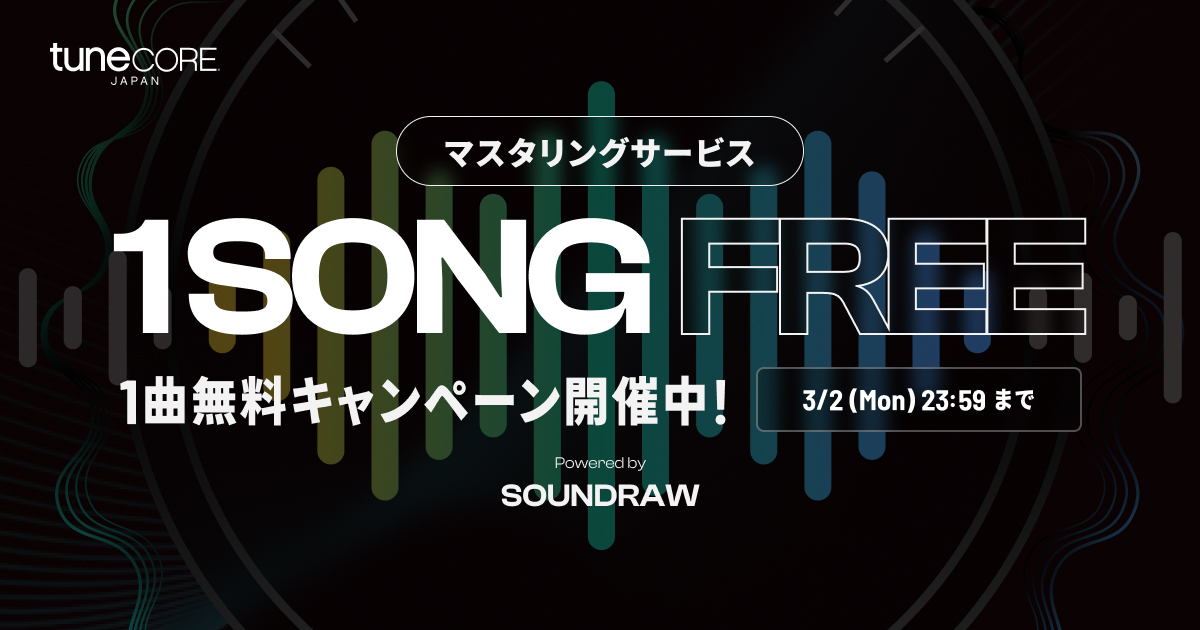 TuneCore Japan、マスタリングサービス1曲無料キャンペーン実施