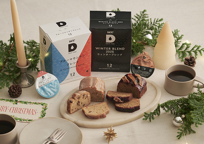 UCCドリップポッド ホリデーを楽しむ「ウィンターブレンド2025」「ブルーマウンテンブレンド」と話題のパティスリー「feuquiage」が作る2種のオリジナルケーキセットを11/10より予約販売開始