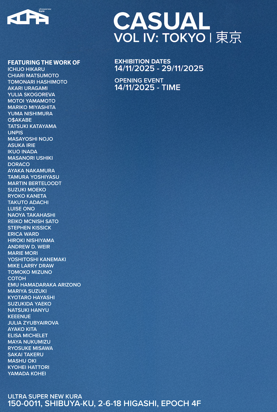 CASUAL Magazine は、東京エディションから選ばれた30人のアーティストの作品を UltraSuperNew KURA にて展示します。