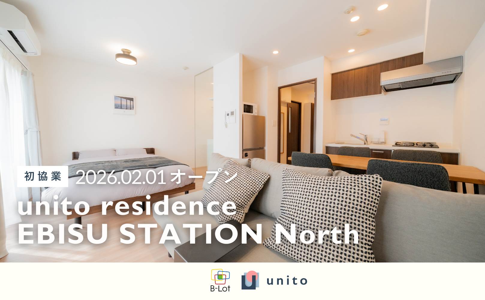 株式会社ビーロット保有物件に、住んだ日数分で暮らせる家賃システム「リレント」を導入。二拠点居住向けサービスアパートメント「unito residence EBISU STATION North」を開業