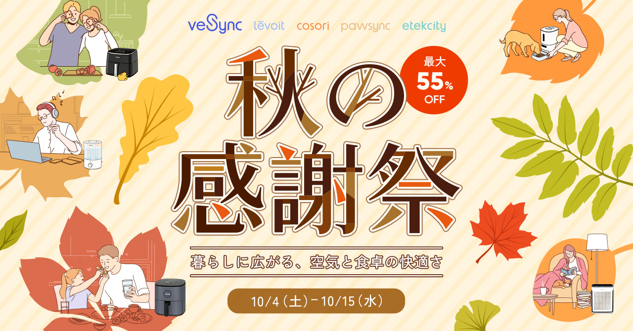 【10月4日~10月15日】VeSync「秋の感謝祭セール」を開催