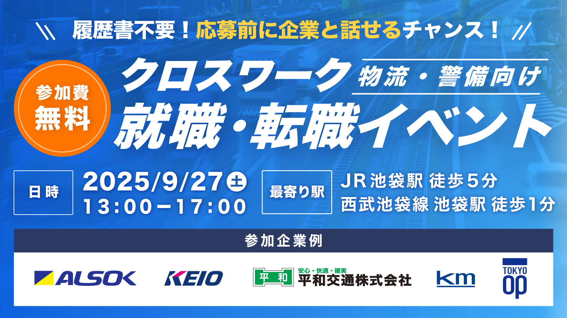 ALSOKなど多数出展! 物流・警備などノンデスク産業特化の転職イベント初開催(9月27日池袋)