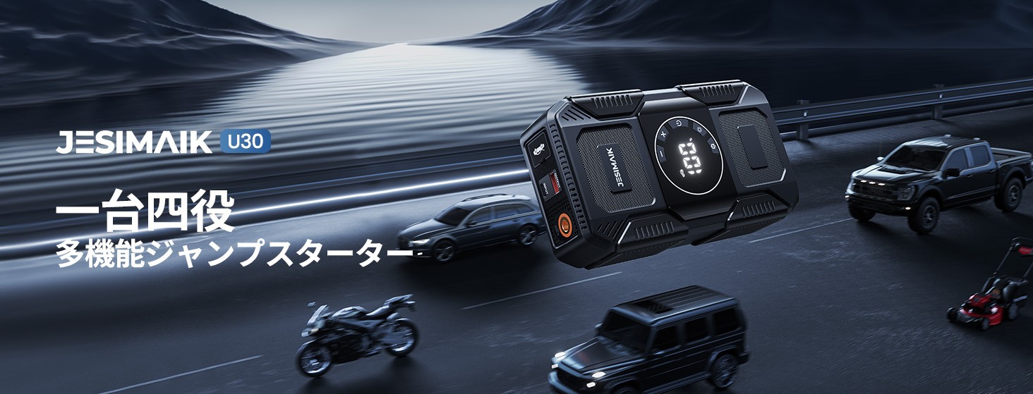 【1台4役】エンジン始動・空気充填・給電・照明、これ1台で安心!JESIMAIK 多機能ジャンプスターター「U30」新登場