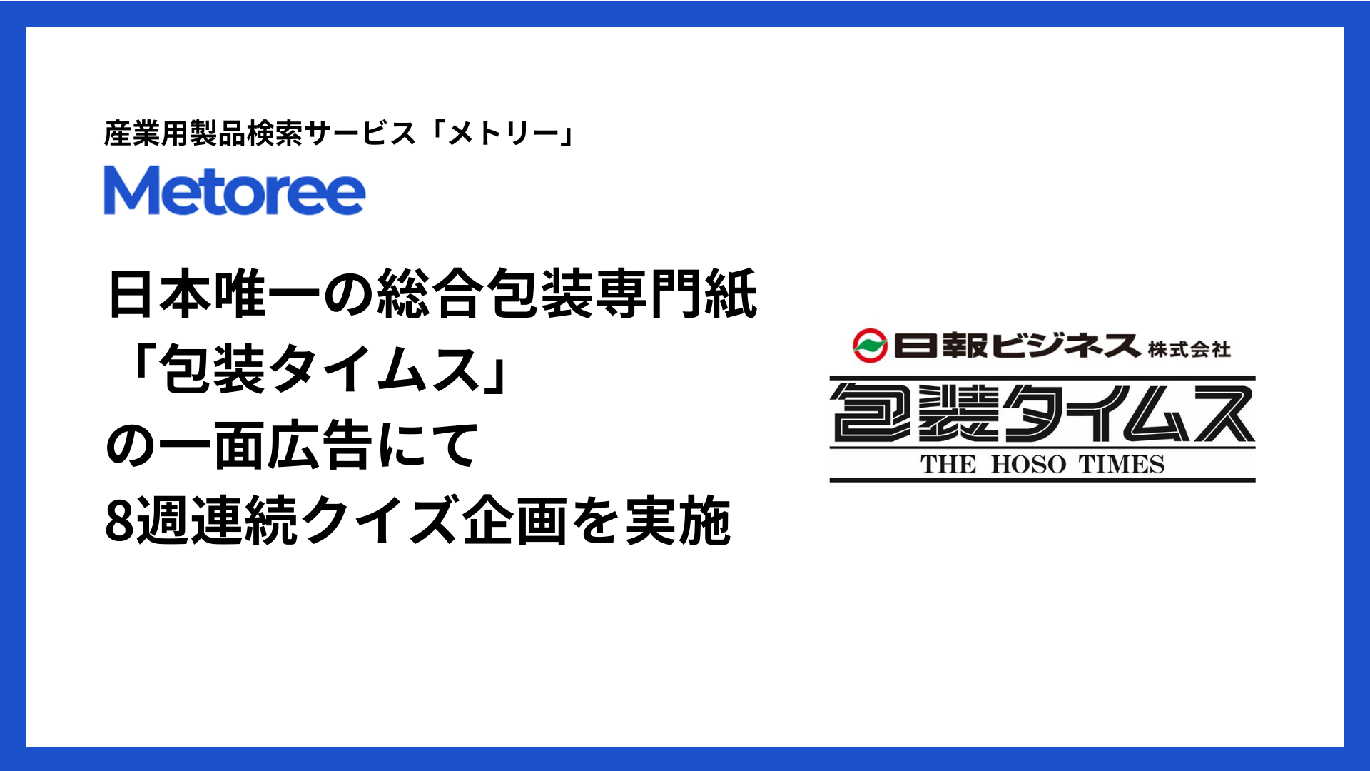 産業用製品比較販売サービス「メトリー」、日本唯一の総合包装専門紙「包装タイムス」の一面に8週連続で広告を掲載しクイズ企画を実施【メトリー クイズ】