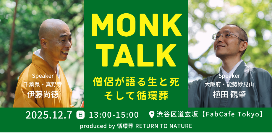 【12/7(日)渋谷開催】2人の僧侶が語る「生と死の循環」 トークイベント by 循環葬(R)︎RETURN TO NATURE
