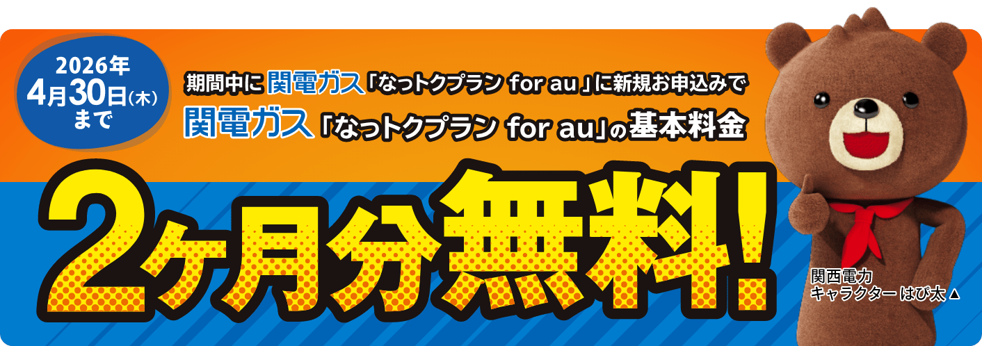 「関電ガスなっトクプラン for au」新規申込みで基本料金2カ月分無料キャンペーン開始