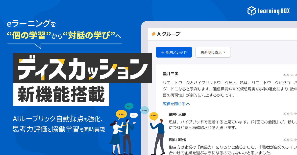 eラーニングを“個の学習”から“対話の学び”へ learningBOX、「ディスカッション」新機能搭載