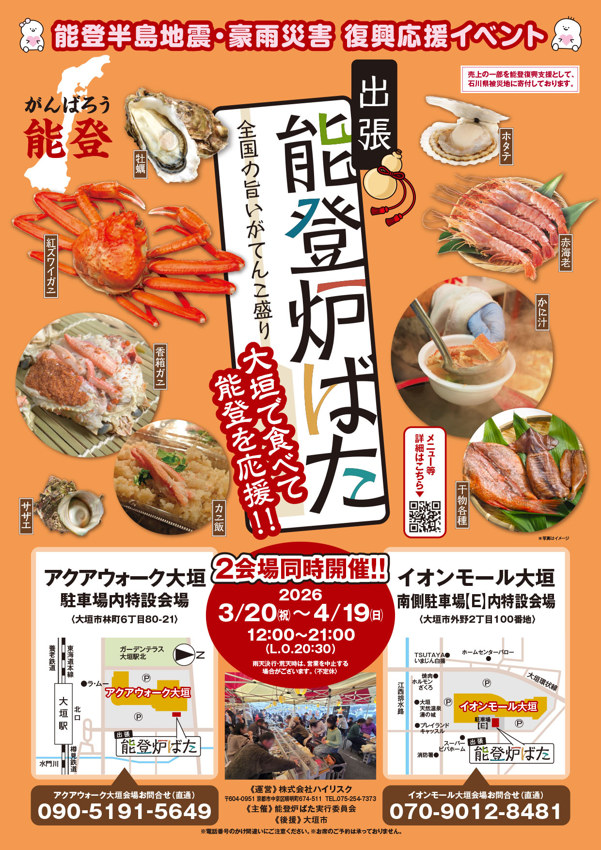 能登の海の幸とともに全国の美味しいものを楽しむイベントを開催します。復興支援の一環として、食を通じた応援の輪を広げます。