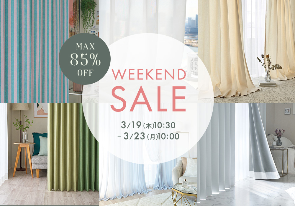 3月19日(木)10時半から開催!『パーフェクトスペースカーテン館 週末セール』今週の目玉は“ドレープ+レースのセットカーテン” 10%OFF!