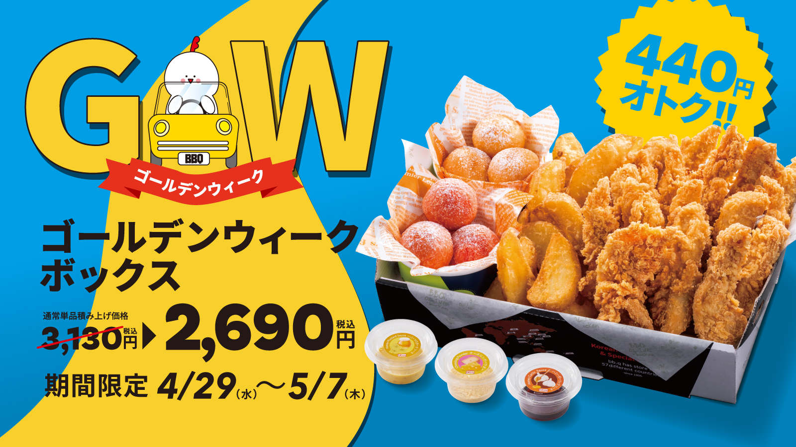 【bb.q オリーブチキン】お子さまから大人まで楽しめる!家族や仲間で囲む連休の食卓にぴったりな「ゴールデンウィークボックス」通常単品積み上げ価格より440円オトクな2,690円(税込)