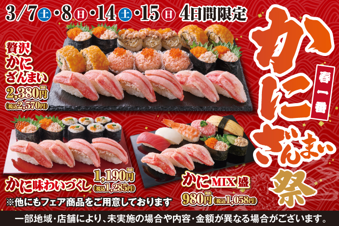 春の訪れを感じるこの季節!小僧寿しでは【かに】好きの皆さまへ贈る特別フェア『春一番 かにざんまい祭』を3月7日(土)~開催!