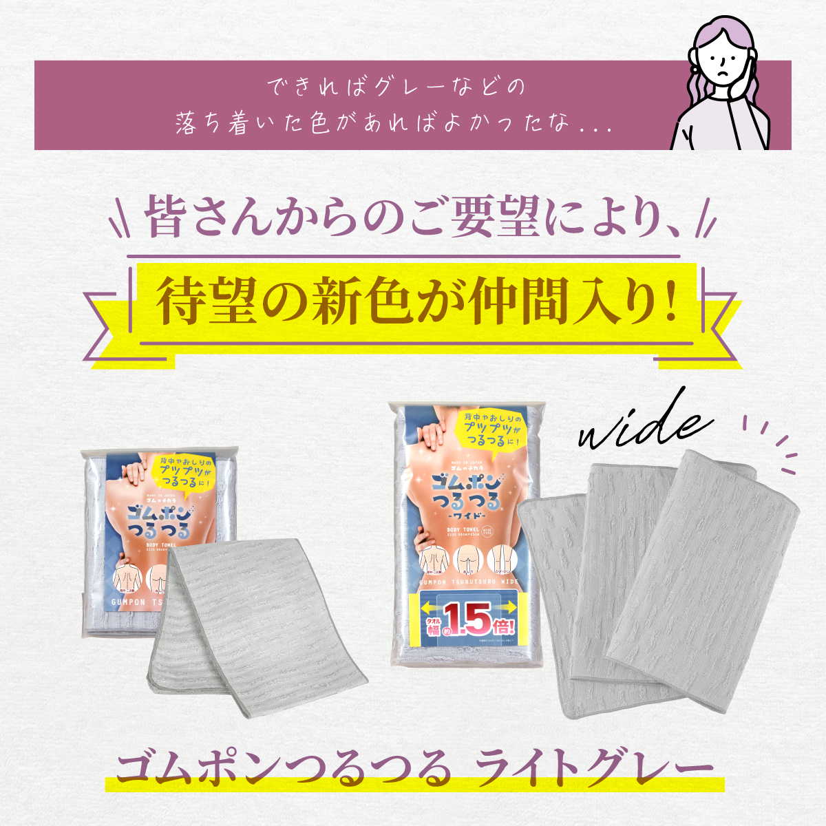 【累計販売360万枚突破】なでるだけで全身つるつる!大ヒットピーリングタオル『ゴムポンつるつる』シリーズに、新色が登場!